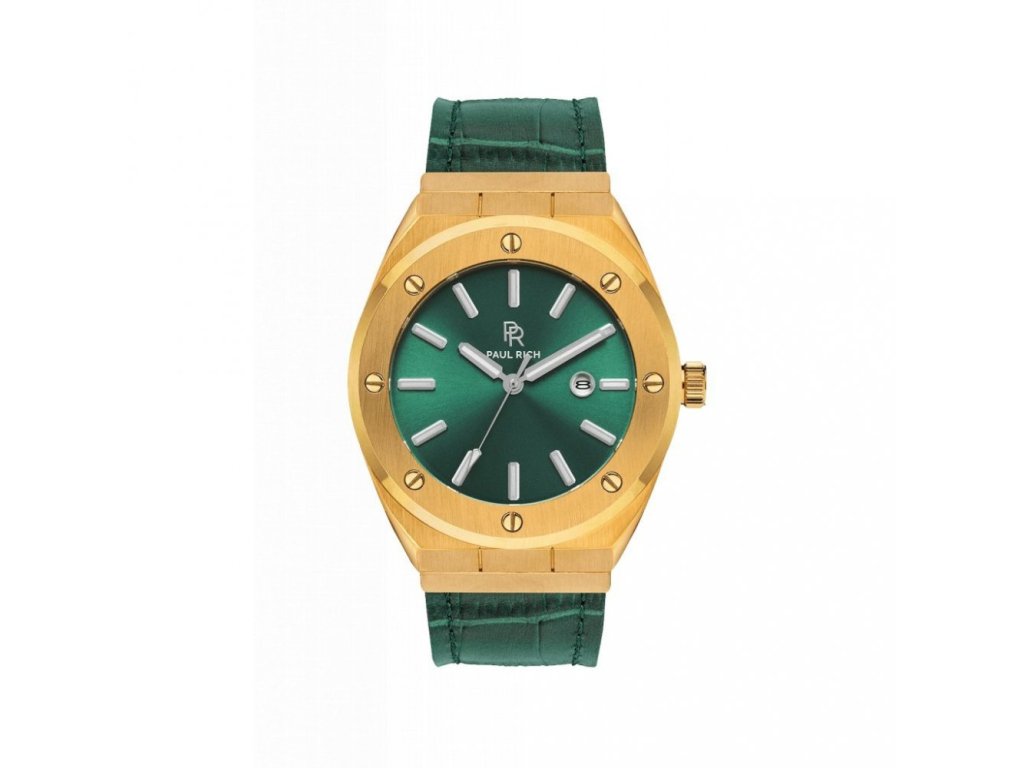 Gold men's Paul Rich watch with a genuine King's Jade - Leather 45MM