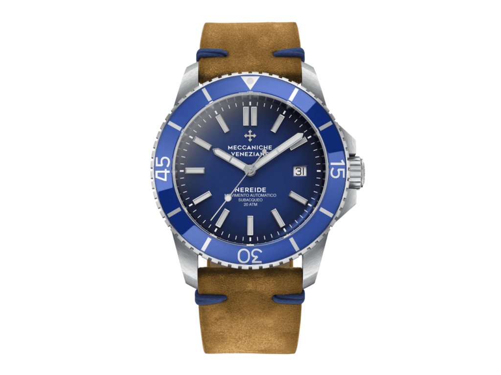 Men's silver watch Meccaniche Veneziane with genuine leather strap Nereide 1302004
