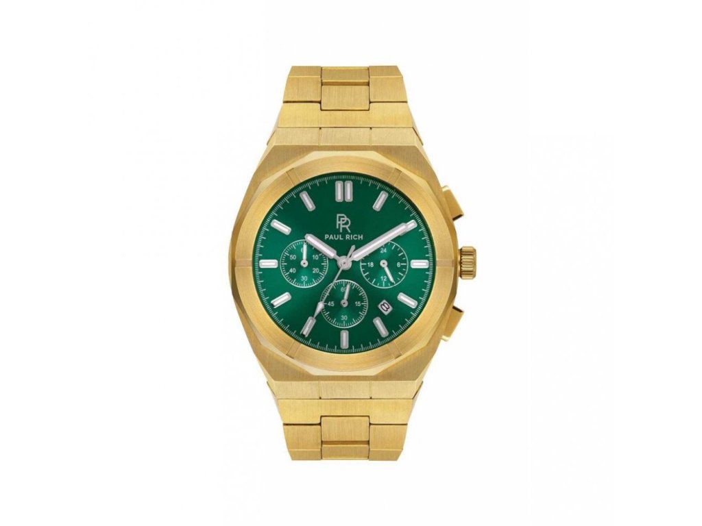 Paul Rich men's gold watch with a steel strap Motorsport - Green Gold Steel 45MM